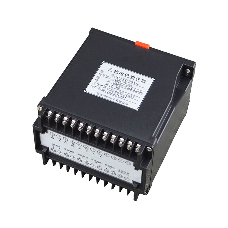 三相電流變送器,通過(guò)專(zhuān)用電量芯片采樣,MCU數(shù)字化處理,真有效值算法,高精度的測(cè)量三相電流(可選第4路電流測(cè)量,用來(lái)測(cè)量中線電流或漏電流)隔離轉(zhuǎn)換成線性直流標(biāo)準(zhǔn)模擬信號(hào)輸出或RS485數(shù)字通信接口輸出。模擬量可選:DC0~20mA、DC4~20mA、DC0~5V、DC0~10V等變送輸出;RS485數(shù)字通信接口,采用國(guó)際標(biāo)準(zhǔn)Modbus-rtu通信協(xié)議,可與各種PLC、HMI、組態(tài)軟件實(shí)現(xiàn)組網(wǎng)。