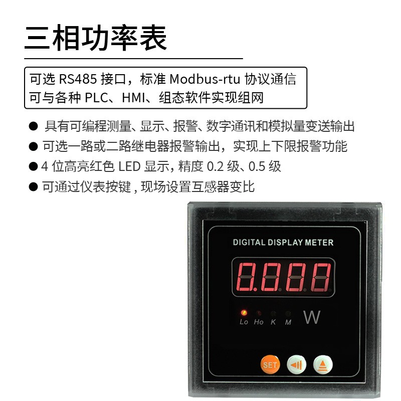 HY194系列數(shù)顯三相交流功率表,是一種具有可編程測(cè)量、顯示、報(bào)警、數(shù)字通訊和模擬量變送輸出等功能的智能儀表,廣泛應(yīng)用于變電站自動(dòng)化、配電自動(dòng)化、智能建筑、自動(dòng)化生產(chǎn)線、測(cè)試臺(tái)等。互感器變比可通過(guò)儀表按鍵現(xiàn)場(chǎng)設(shè)置,使用方便靈活。