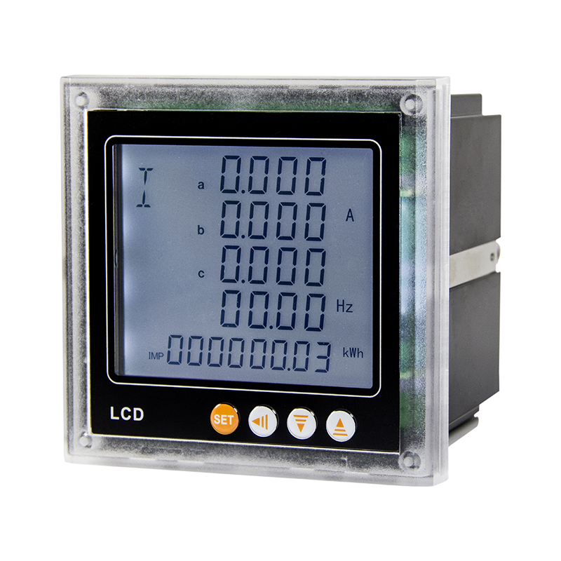 測量電網(wǎng)中的電量參數(shù)有:Ua、Ub、Uc(相電壓);Uab、Ubc、Uca(線電壓);Ia、Ib、Ic(電流);In(漏電流);Pa、Pb、Pc、Ps(每相有功功率和總有功功率);Qa、Qb、Qc、Qs(每相無功功率和總無功功率);PFa、PFb、PFc、PFs(每相功率因數(shù)和總功率因數(shù));Sa、Sb、Sc、Ss(每相視在功率和總視在功率);F(頻率)以及有功(無功)電能;復(fù)費(fèi)率電能;三相電壓諧波含量;三相電流諧波含量,所有的測量電量參數(shù)全部保存儀表內(nèi)部的電量信息表中,通過儀表的RS485通訊接口可訪問采集這些數(shù)據(jù)。