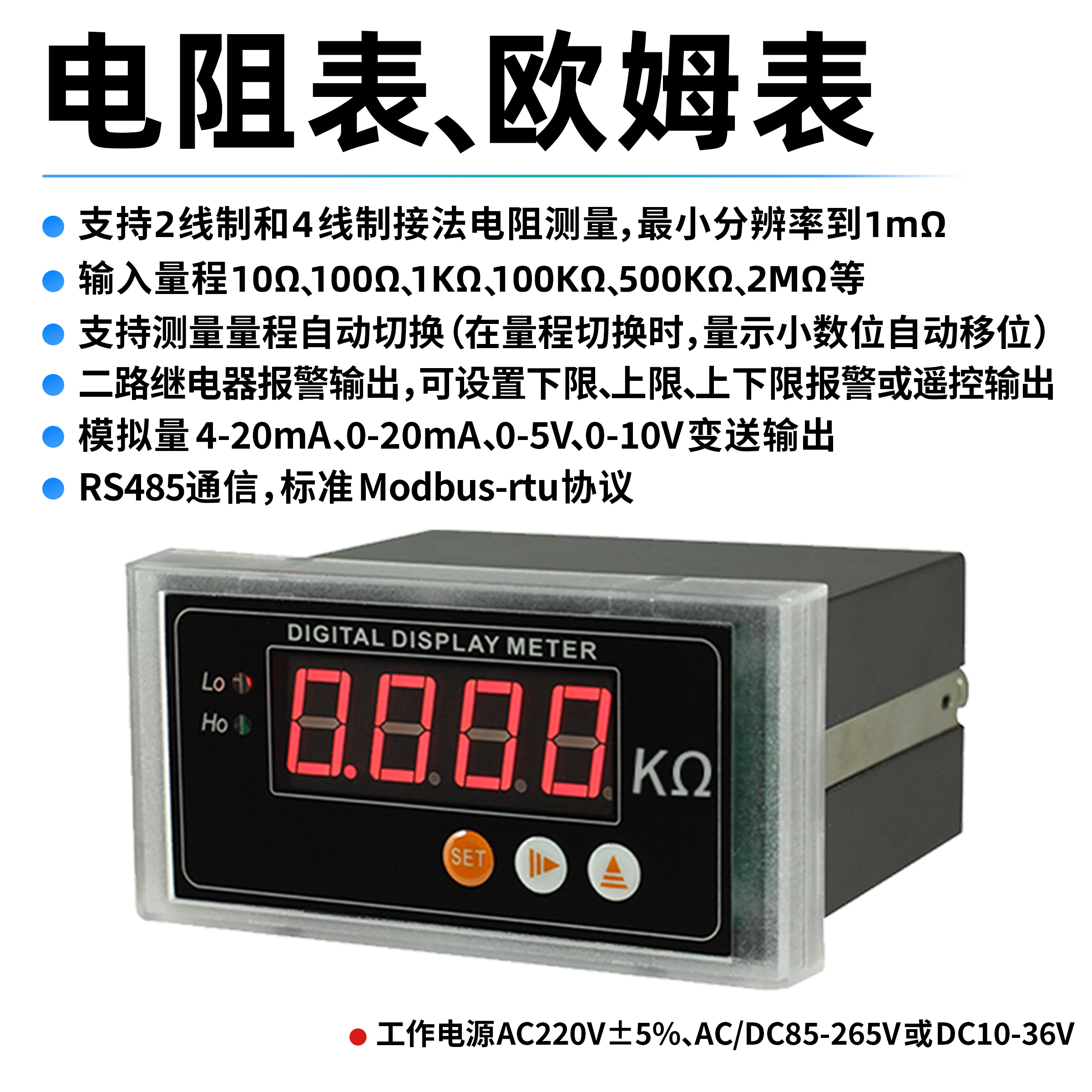 (7) 電阻量程對(duì)應(yīng)顯示值可設(shè)。